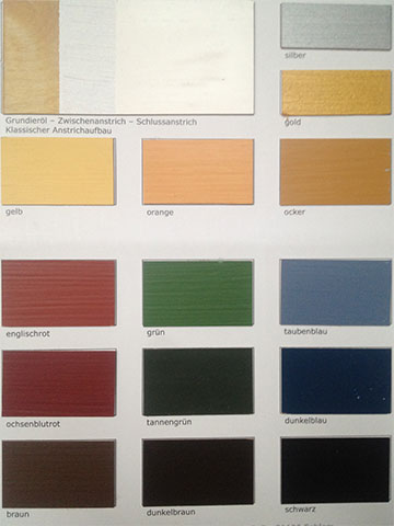 In der Herstellung verwenden wir eine Kombination aus Leinöl, verschiedenen Standölen und Kolophoniumharzen. Diese Mischung gewährleistet eine hervorragende Vernetzung mit dem Holz und ergibt wetterfeste und elastische Anstriche. Durch die Diffusionsfähigkeit der Holzglasur bleibt der Feuchtigkeitsabtransport aus dem Holzinneren an die Umgebung gewährleistet.